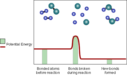 Notice that the proportion of heat and light energy after the new bonds form is greater than it was before. In other words, heat and light energy are released as the reaction is completed. On average the bonds in the Water (H-O-H) molecules are stronger than those of the Hydrogen (H-H) and Oxygen (O-O) molecules. Because the (H-O) bonds in water are stronger, they have less potential energy, therefore some of that chemical potential energy must be converted to heat and light.